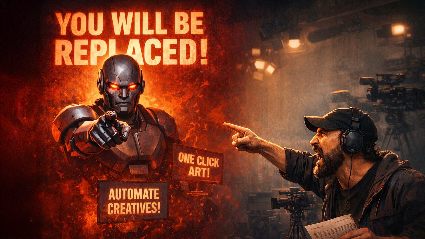 And threats do not convert thoughtful professionals. They trigger immune systems. They trigger contempt. They trigger the very reaction you complain about later: “creatives are so emotional about AI.”